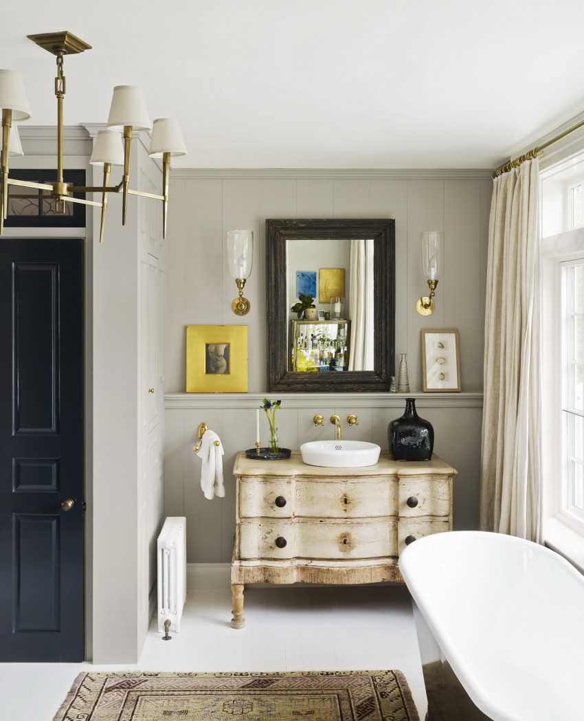 Ретро-морской стиль можно изобразить, используя латунь и бронзу, больше текстиля и древесины. В обрамлении различных предметов в ванной комнате можно применить ракушки и камушки, толстый и тонкий канат, раритетные скульптуры и др.