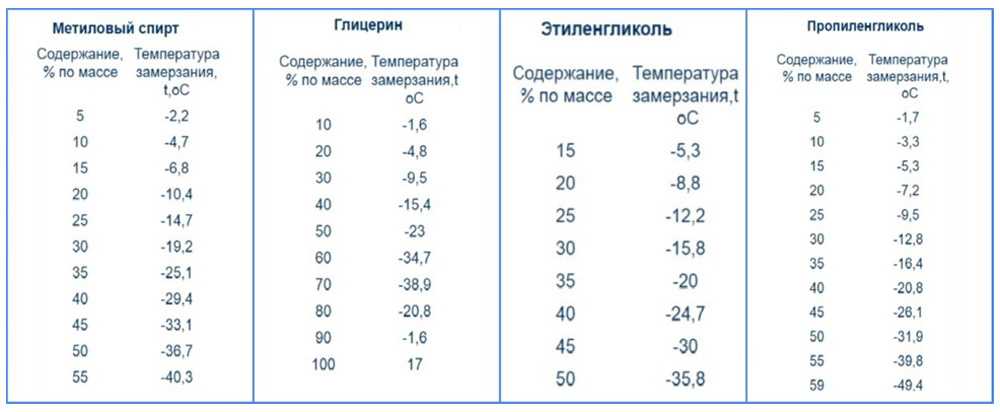 Рис. 4 Температуры кристаллизации водных растворов незамерзающих жидкостей