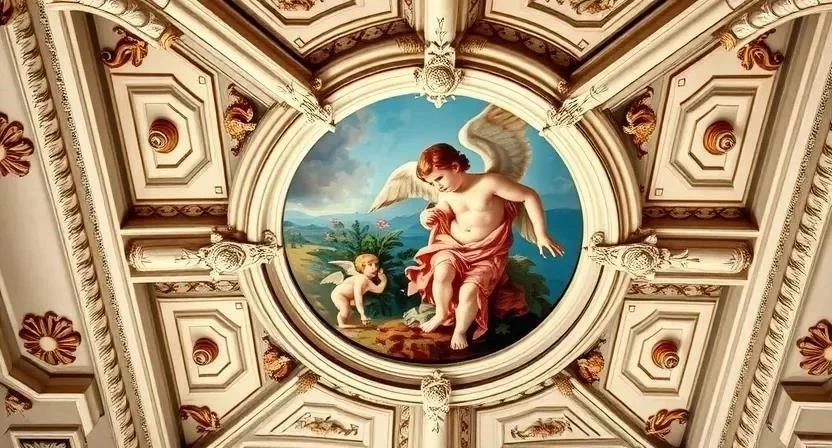 Отделка потолка в стиле барокко – это не менее важный аспект, чем отделка стен. Для отделки потолка используются лепнина, роспись и позолота. Лепнина на потолке создает эффект объемного изображения и придает интерьеру торжественность. Роспись на потолке может изображать различные сюжеты: ангелов, облака, цветы. Позолота придает интерьеру роскошь и блеск. Однажды я видел потолок в одном старинном замке, который был полностью покрыт позолотой, и это было просто завораживающее зрелище. Важно помнить, что отделка потолка должна гармонировать с отделкой стен и пола.
