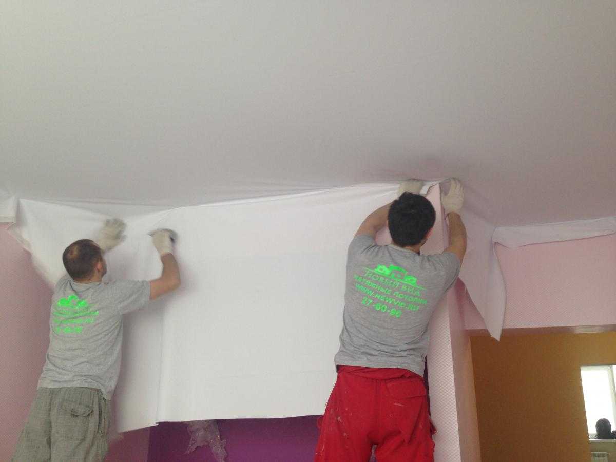 - Особая технология монтажа натяжных потолков и необходимость специального оборудования делает такой тип ремонта невозможным для собственноручного исполнения.