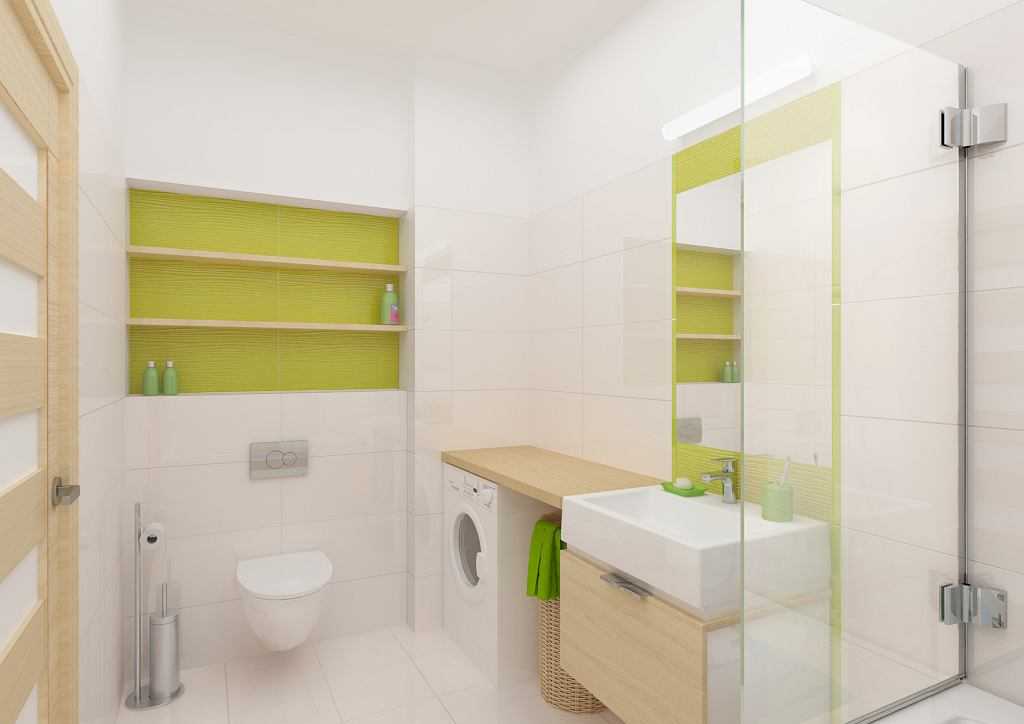 Салатовый цвет, например, можно смело сочетать с ярким желтым и даже оранжевым цветом, но лучше так оформлять большую ванную.
