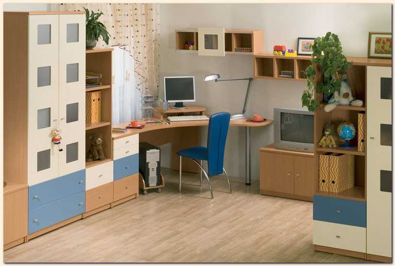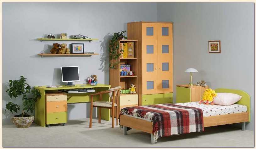 Оптимальный вариант – приобретение модульной детской мебели из дерева, МДФ, ДСП. Этот набор легко переставлять. В такие модели можно вместить все необходимые вещи, предметы для учебы, оставив свободное пространство для игр.