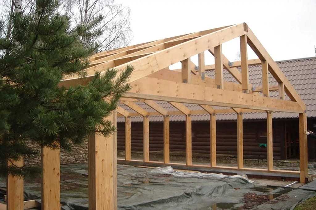Не менее популярным материалом для конструирования навесов, является дерево. Из него можно сконструировать даже двухскатную конструкцию кровли. Смотрите статью по теме: как сделать беседку на даче.