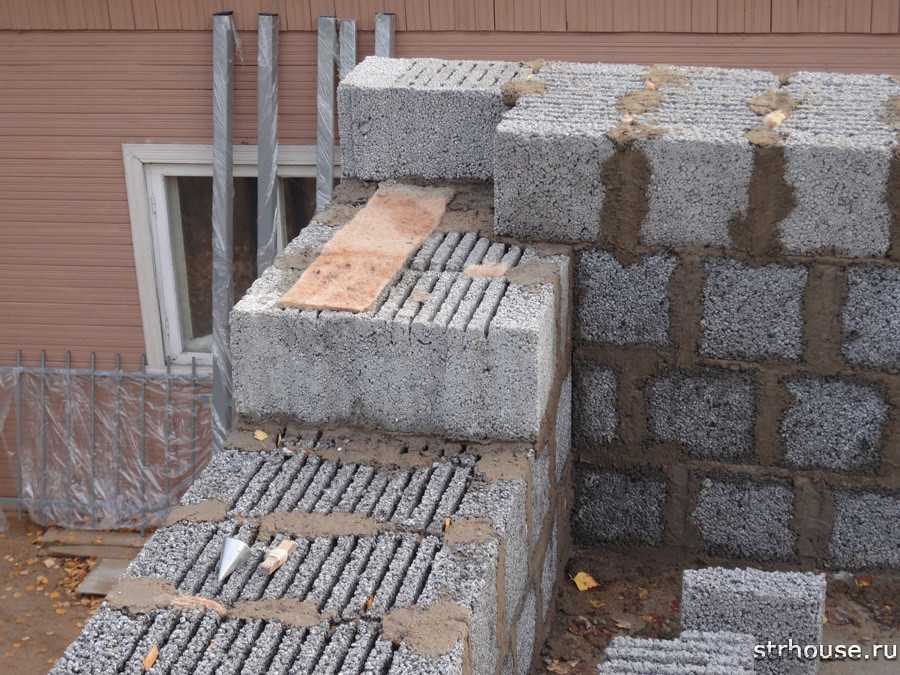 Толщина стен из керамзитобетонных блоков составляет в основном четырнадцать сантиметров, размеры несущих стен превышают эти значения и составляют примерно 90 сантиметров.