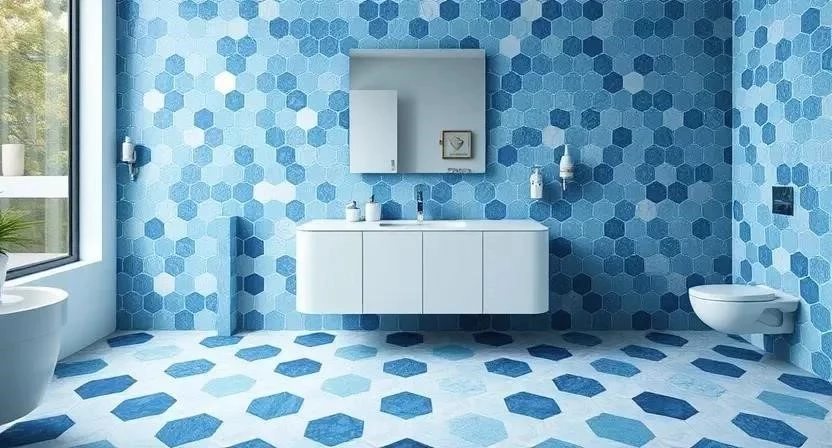 - Ванная: Плитка с геометрическим рисунком станет ярким акцентом в комнате.