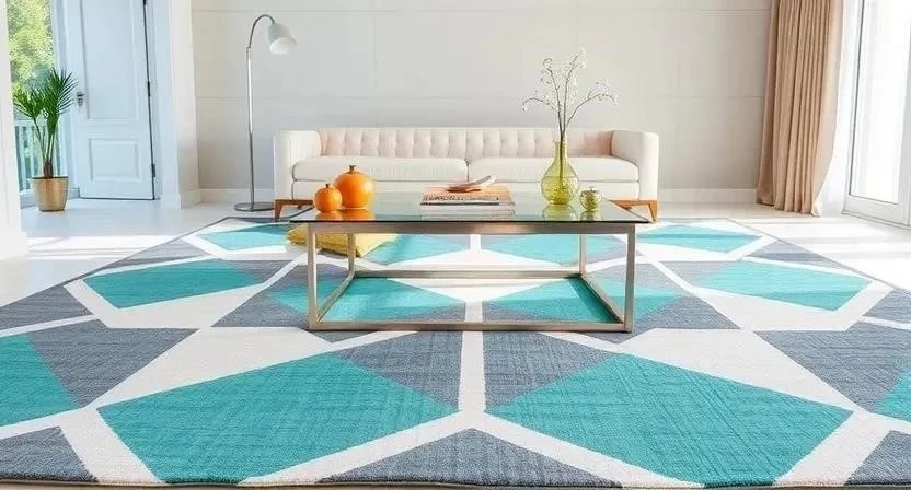 - Гостиная: Можно использовать яркие геометрические узоры на стенах и полу, а также мебель с четкими формами.