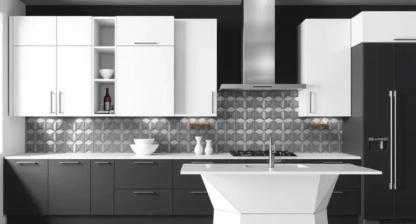 - Кухня: Геометрические узоры на фартуке и плитке добавят интерьеру оригинальности.