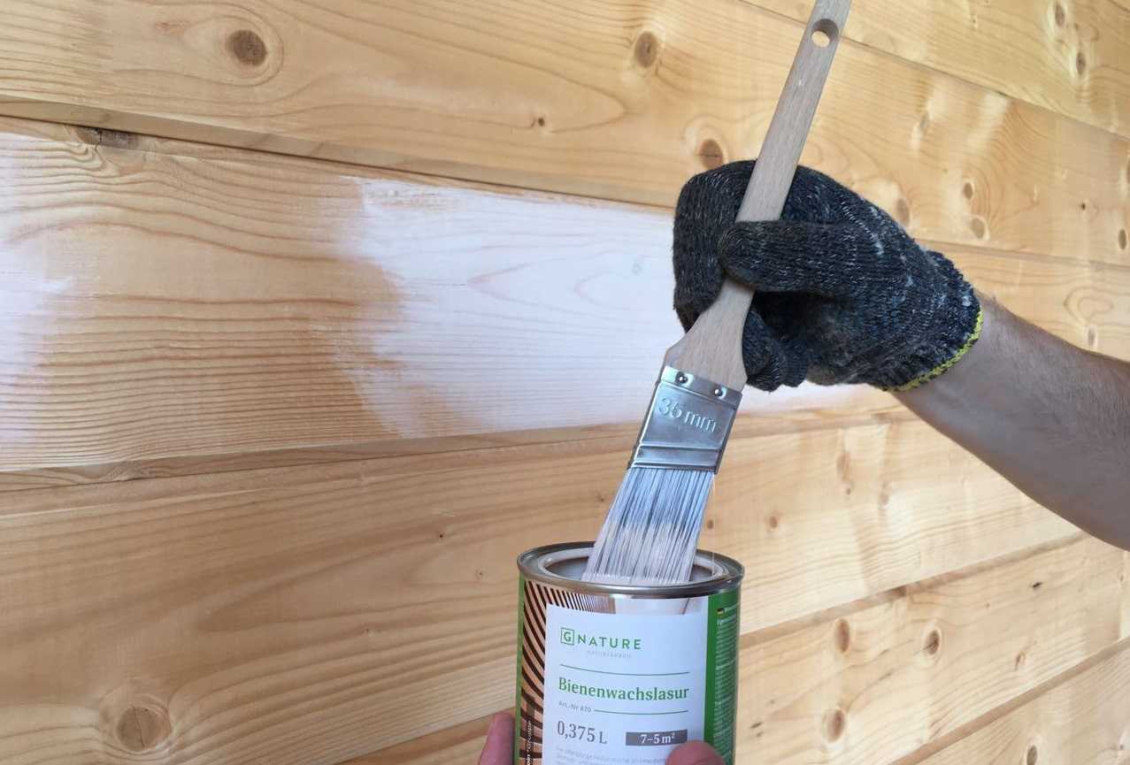Завершающий этап облицовки – дополнительная обработка имитации бруса защитным составом от негативных воздействий природной среды.