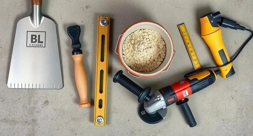 Ответ: Вам понадобятся: уровень, правило, шпатель, ведро для смешивания, дрель с насадкой-миксером, шлифовальная машинка, кисть или валик для грунтовки.