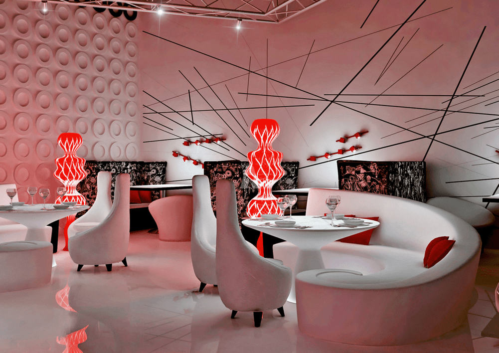 Текучесть линий позаимствована авангардом у модерна. Дополнением выступает игра на контрастах не только в отношении цветов, но и форм. Такая организация относится ко всему помещению в целом, позволяя стирать границы между отдельными зонами.