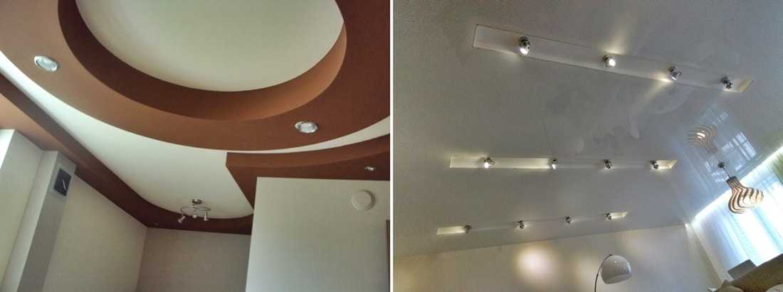 Потолок необходимо делать в традиционно белом или другом светлом тоне. Это может быть подвесной или натяжной потолок, с ровной или многоуровневой поверхностью разной формы.