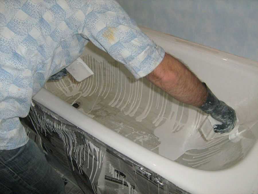 акрил на дне ванны необходимо равномерно распределить шпателем.