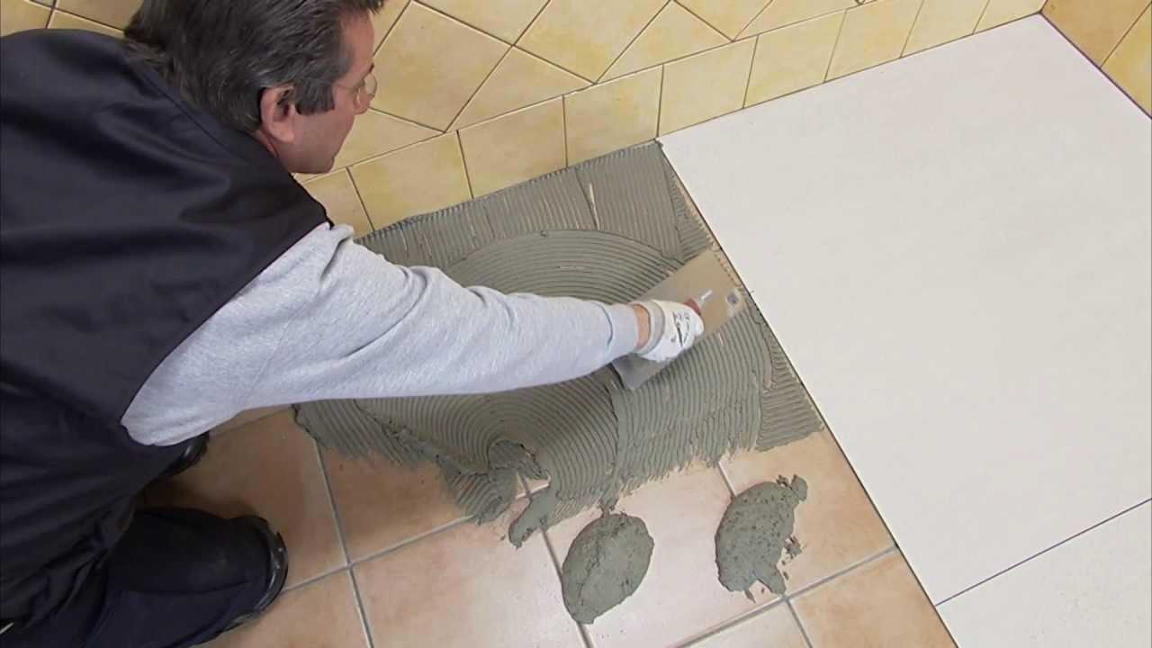 Вначале нужно убедиться, что старая плитка держится прочно. Если это не так, под весом новой облицовки материал отвалится. Поступают следующим образом: