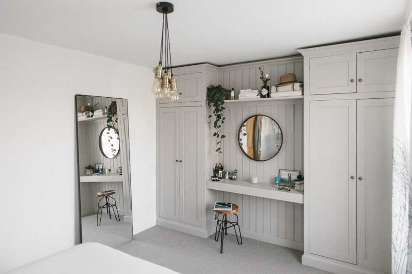 Когда ремонт в помещении выполняется с нуля, рекомендуется выполнить небольшую нишу в стене (или большую, если позволяет пространство). Здесь будет стоять шкаф-купе, который заменит полноценную гардеробную.