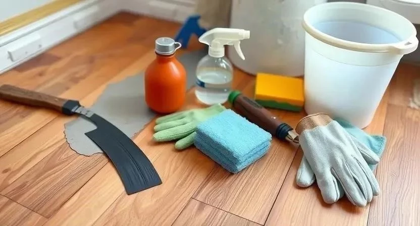 Ответ: Вам понадобятся шпатель, скребок, распылитель, валик, ведро, губка и средства защиты (перчатки, очки, респиратор).