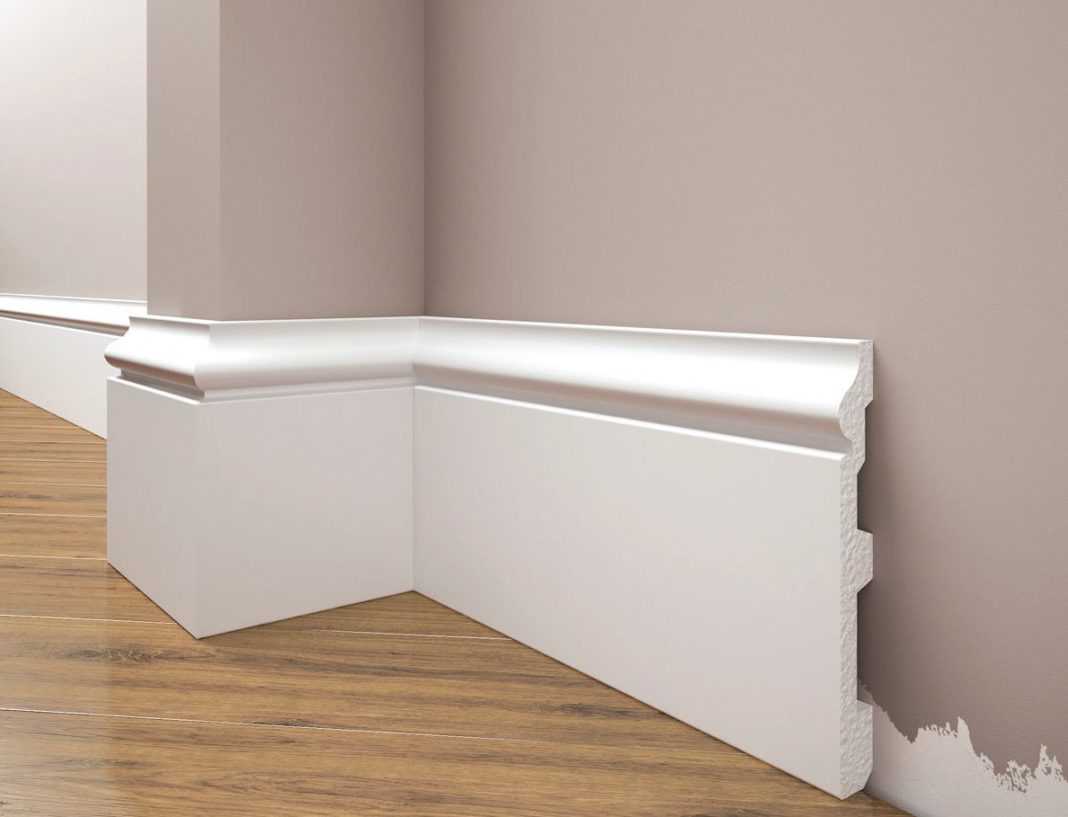 Напольный плинтус выполняет не только декоративную роль, но и позволяет прижать половое покрытие и скрыть дефекты отделки. Исходя из этого, нужно выбирать плинтус определенной ширины. При высоте потолков 2,5-3 м рационально использовать классический профиль высотой от 40 до 70 мм.