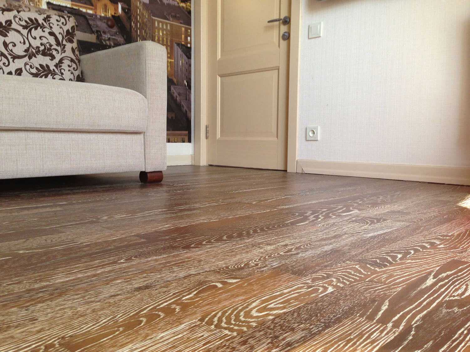 Важно: нельзя жестко закреплять такие покрытия как ламинат или массив дерева. Они в процессе эксплуатации могут изменять свою площадь, что связано с увеличением или уменьшением влажности в помещении