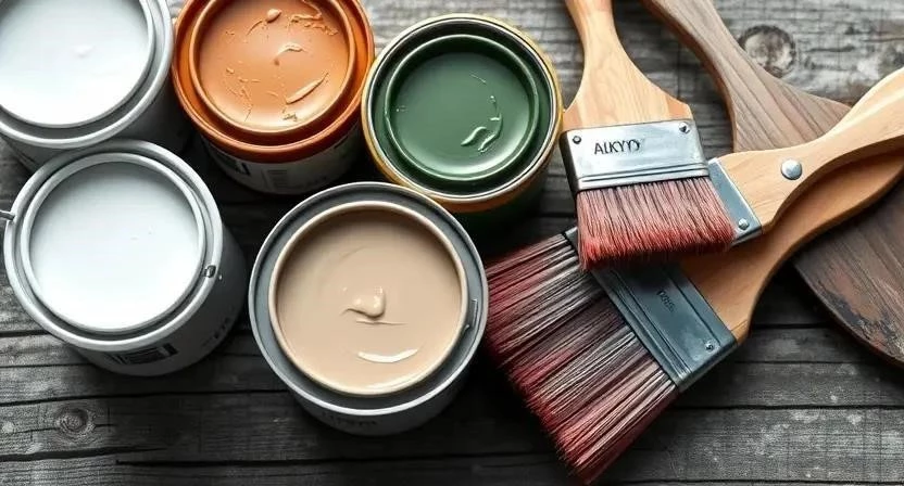 Алкидные краски изготавливаются на основе алкидных смол, пигментов и растворителей. Преимущества: более быстрое высыхание (24 часа) по сравнению с масляными красками, хорошая эластичность, устойчивость к истиранию. Недостатки: невысокая экологичность, склонность к пожелтению со временем. Области применения: фасады зданий, деревянные окна и двери.
