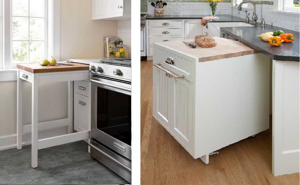 Альтернатива выкатному шкафу – выдвижная дополнительная столешница.