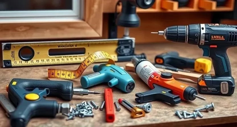 - Инструменты: Перфоратор, дрель, шуруповерт, уровень, рулетка, монтажный пистолет, молоток, стамеска.