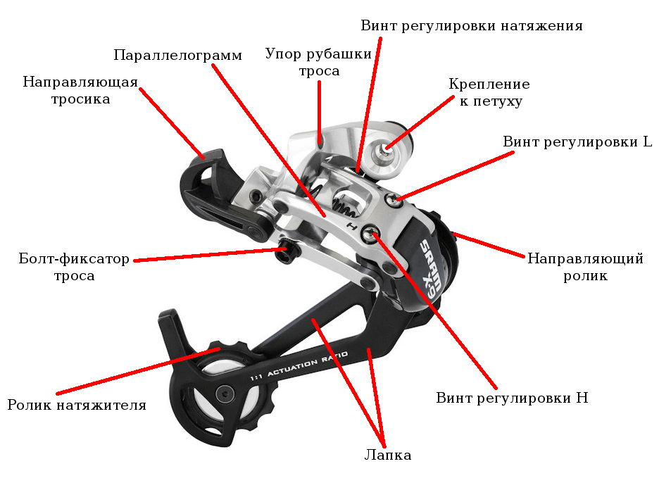 Каково же устройство заднего переключателя? Прежде, чем изучить то, как работает это устройство, рассмотрим конструкцию: