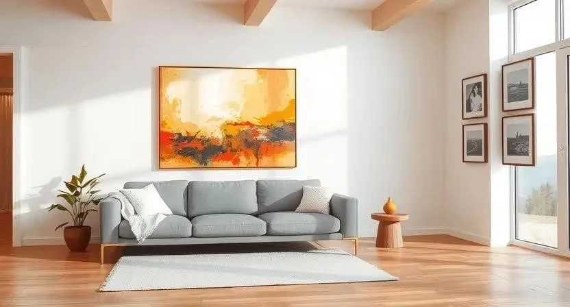 Ответ: Для гостиной подойдут большие картины или галерея из нескольких картин, которые будут привлекать внимание и создавать атмосферу уюта.