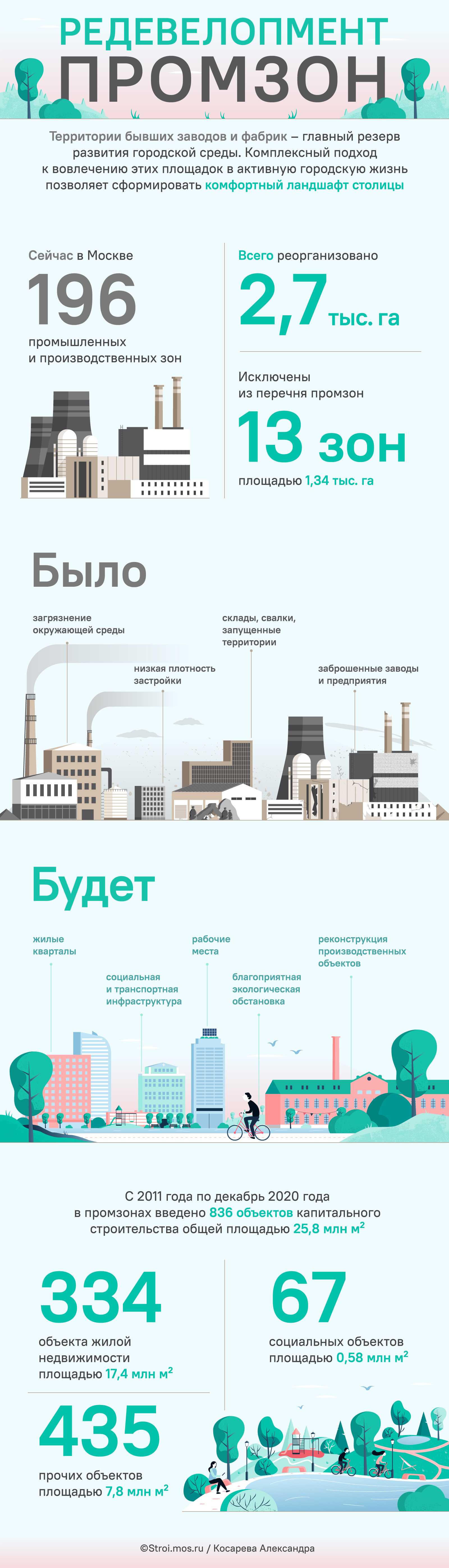 Реорганизация промзон дает возможность обеспечить горожан дополнительно жильем, рабочими местами, объектами соцкультбыта, дорогами и парковками.
