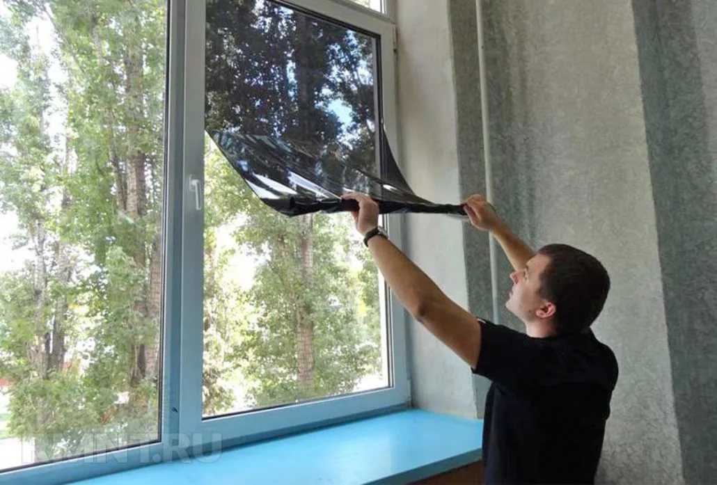 - на окнах можно установить специальные экраны для защиты от солнца, подойдет также светлая пленка либо же фольга;