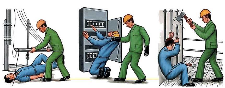 - Если обесточить прибор невозможно, нужно оттащить от него пострадавшего на удаленное расстояние.