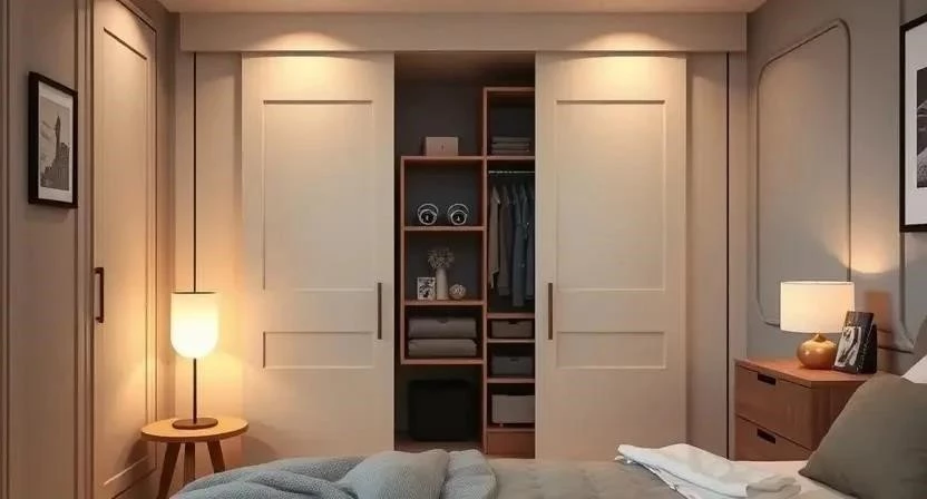 - Шкаф-купе: Не требует дополнительного места для открывания дверей.