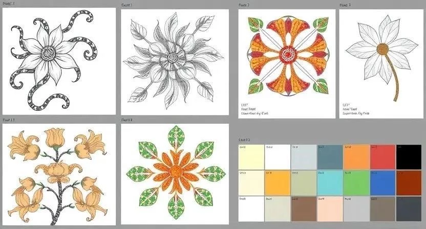 Дизайн и эскиз: Разработка рисунка, выбор цветовой гаммы, создание шаблона