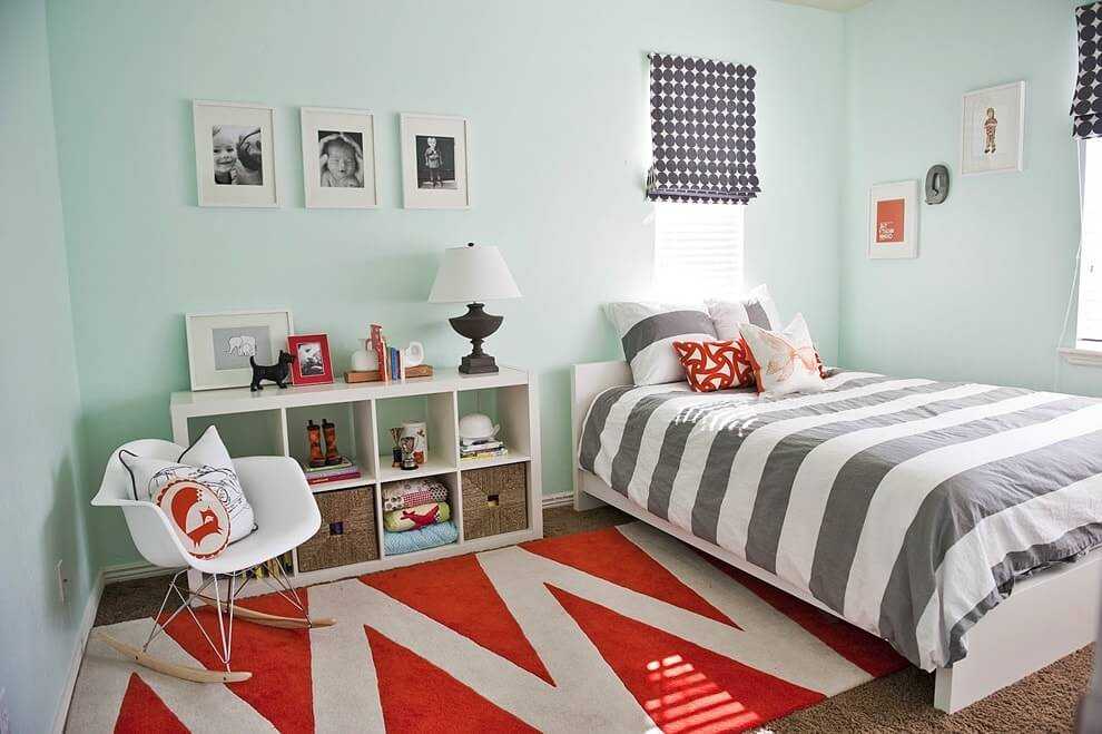 Комната, выполненная в зеленом цвете, поможет создать неповторимую атмосферу, в которой ребенок будет себя чувствовать комфортно. Различные оттенки этого цвета помогают расслабиться, положительно влияют на зрение и улучшают общее самочувствие. Можно оформить комнату не только в зеленом или в салатовом цвете, но и выбрать другие оттенки. Например, нежный мятный или насыщенный бирюзовый.