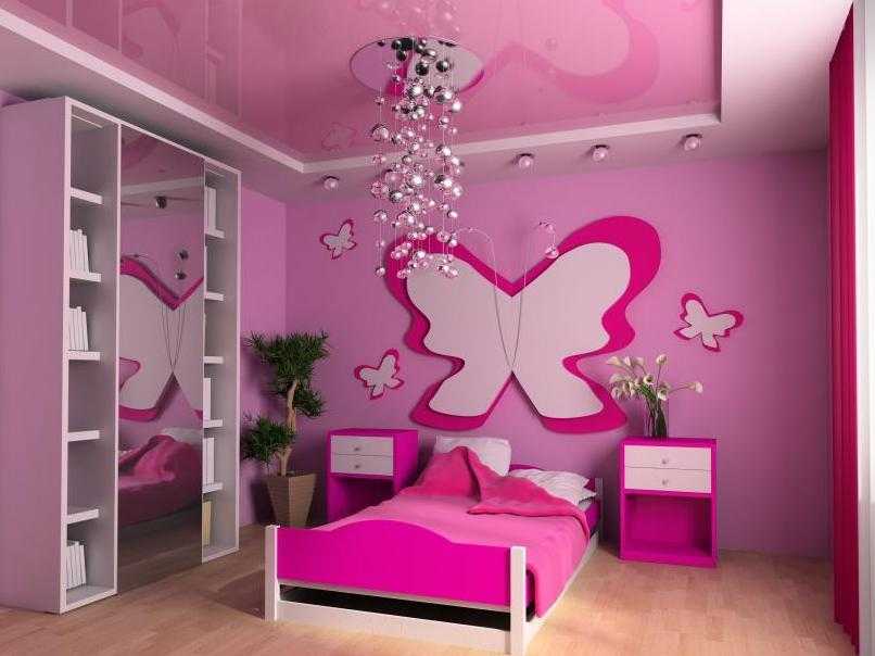 Несомненно, есть девочки, которым близка «мальчишеская» тематика – спорт, техника. Тем не менее в целом они более романтичны и не откажутся от таких стилевых решений, как комната принцессы или лесной феи. В первом случае помещение выдерживается в нежных розовых оттенках. Здесь можно встретить героев сказок, увидеть замки и множество сердечек. Второй вариант предполагает наличие бабочек, цветов и различных животных на зеленом фоне во множестве его тонов.
