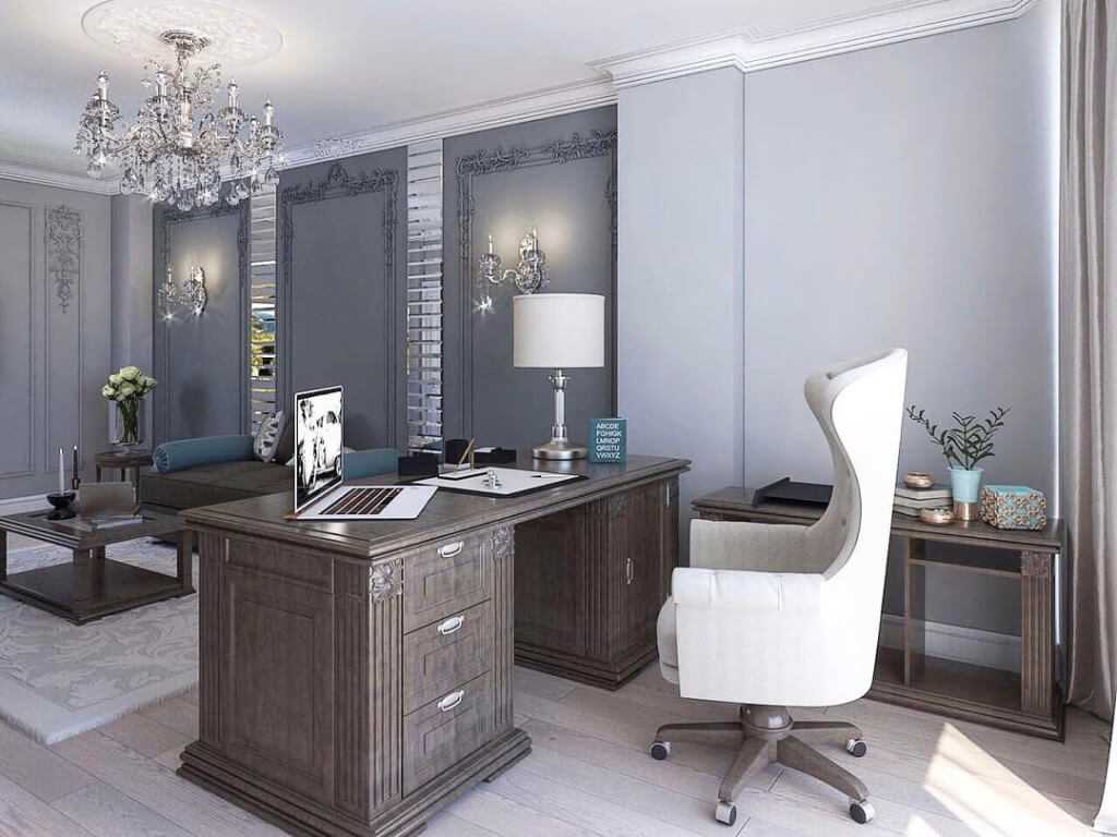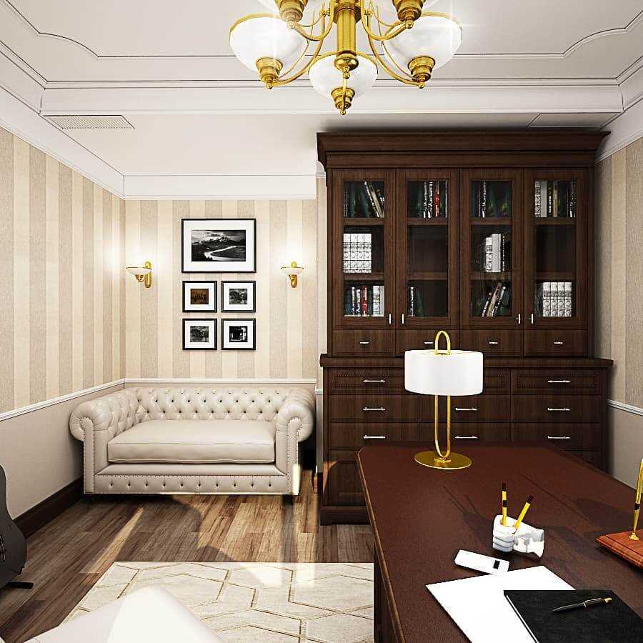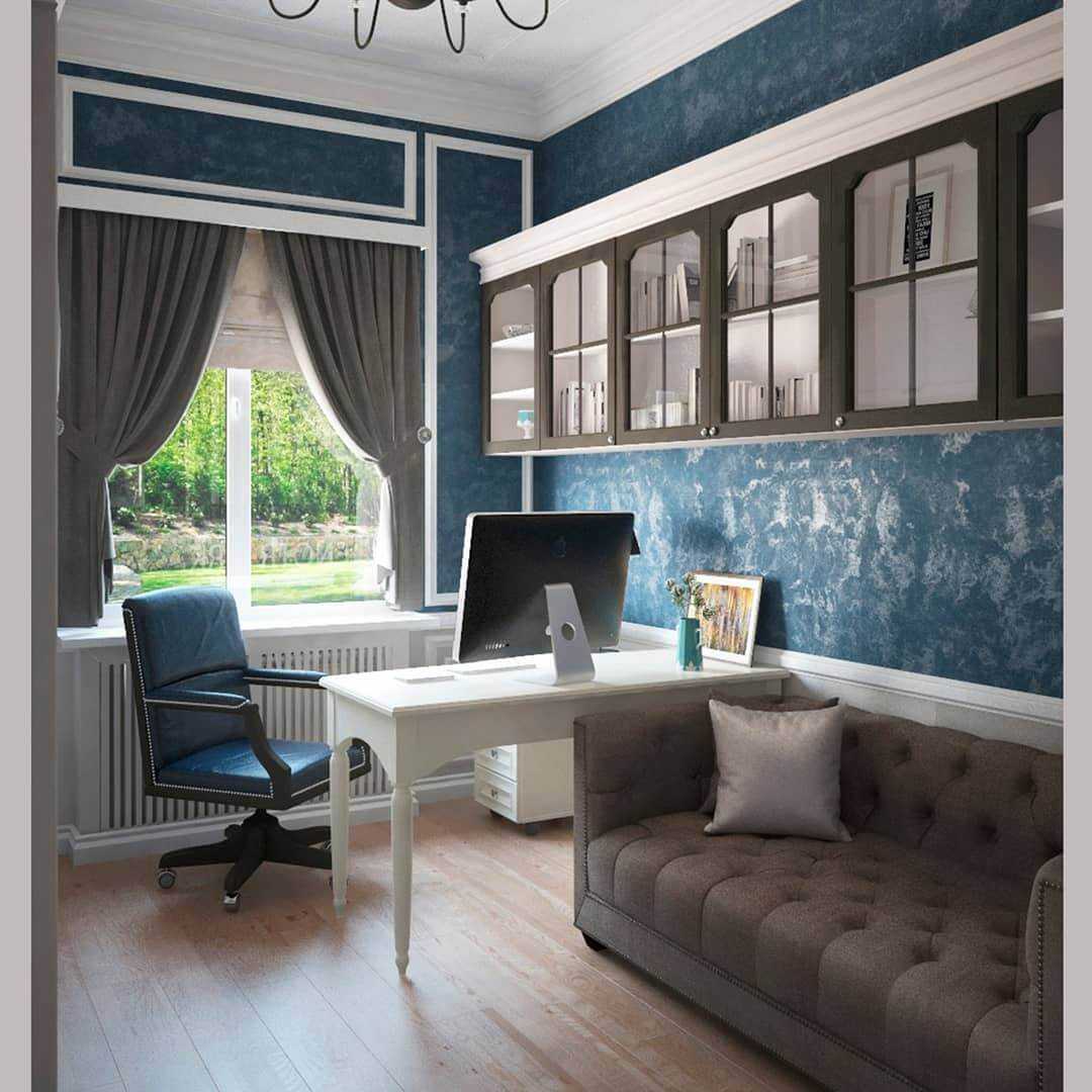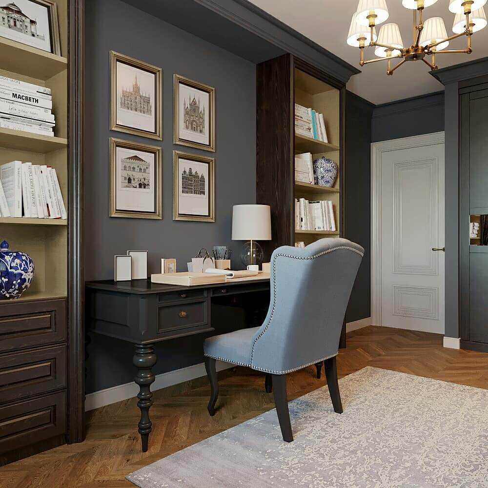 Стиль классика в интерьере рабочего кабинета наиболее приемлем, поскольку свидетельствует о состоятельности и респектабельности хозяина. Выдержанный английский интерьер темного дерева – открытые книжные шкафы вдоль стен, тяжелый дубовый рабочий стол и мягкий диван или пара кресел – определенно способствует налаживанию профессиональных контактов и работоспособности. Чтобы избежать излишней мрачности обстановки, используйте более светлые, натуральные древесные оттенки и цветовые дополнения – красный, зеленый и синий. Для приверженцев современных интерпретаций подойдет стиль в интерьере «современная классика» — сочетание традиционных правил с современными веяниями.