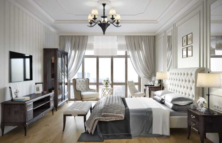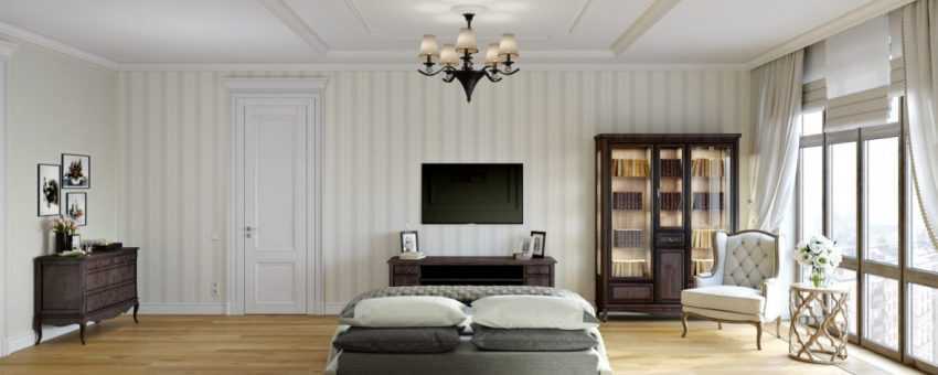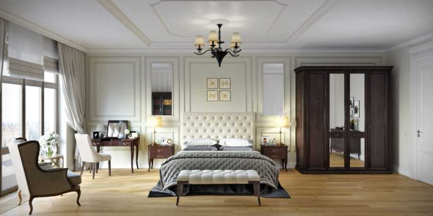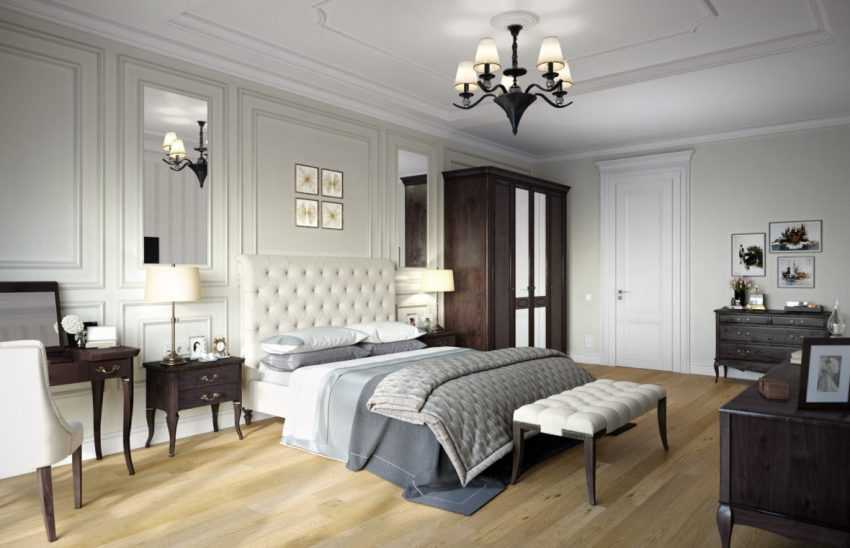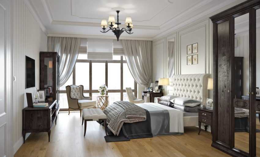 Классическая спальня оформляется в сдержанной цветовой гамме