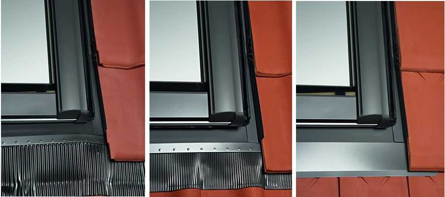 Герметичность. Для соединения окна с кровлей применяется специальный гидроизолирующий оклад. Для разных типов кровельных покрытий разработаны отдельные виды окладов: для плоских кровель, для профилированных с высотой волны до 45 и до 95 мм.