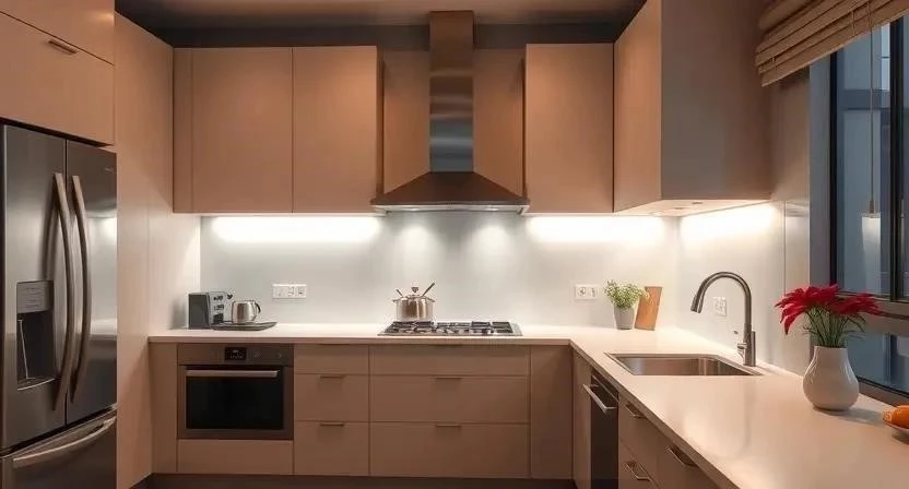 На кухне важно обеспечить яркое и равномерное освещение рабочей зоны, а также создать уютную атмосферу в обеденной зоне. Используйте комбинацию общего освещения (потолочные светильники), локального освещения (подсветка рабочей поверхности) и декоративного освещения (подсветка кухонных шкафов).