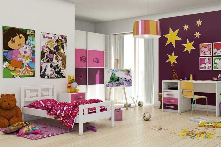 Оформление стены в комнате девочки