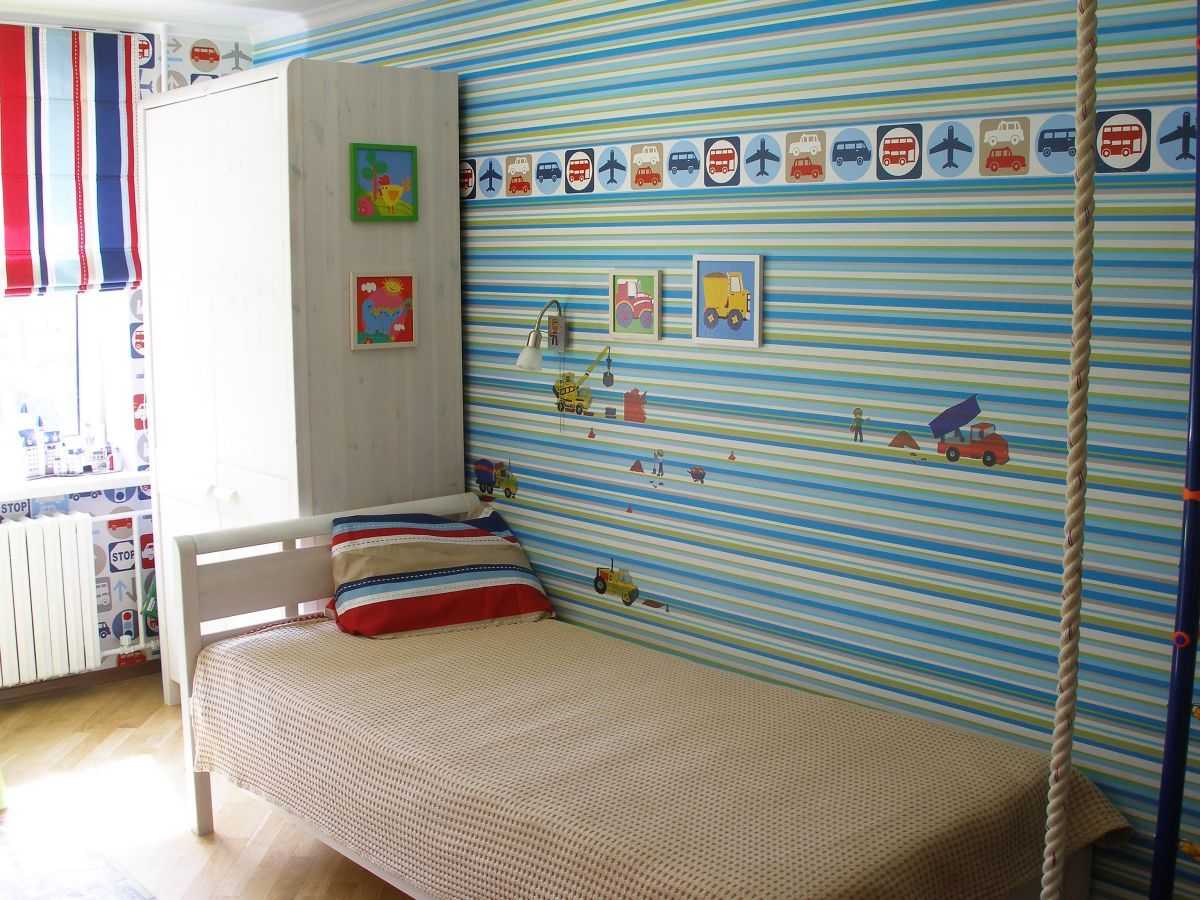 Обои с вертикальными полосками визуально делают помещение выше – такой прием отлично подходит для оформления небольших комнат. Цвет полосок при этом должен немного контрастировать между собой, чтобы усилить данный эффект. Такие обои будут прекрасно смотреться и в комнате мальчика, и в детской для девочки.