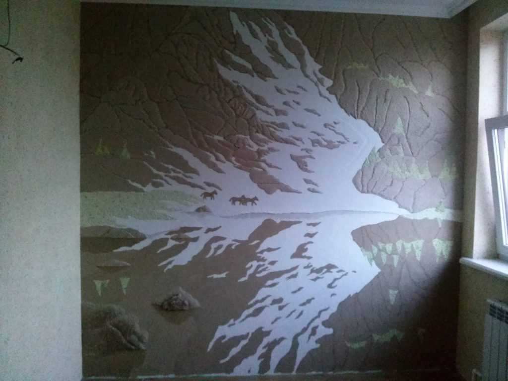 Обить ей стоит ту стену, к которой хотелось бы привлечь внимание.Декоративная отделка стен штукатуркой. Такая облицовка может стать отличным фоном для панно, молдингов, гипсовых плинтусов, обрамлений под картины, светильники