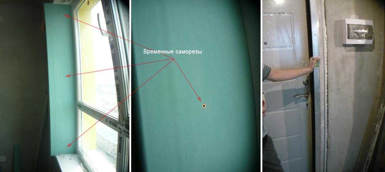 входить в этот паз. Ближе к внутреннему краю стены вкручиваются маячковые саморезы с расстоянием 30-50