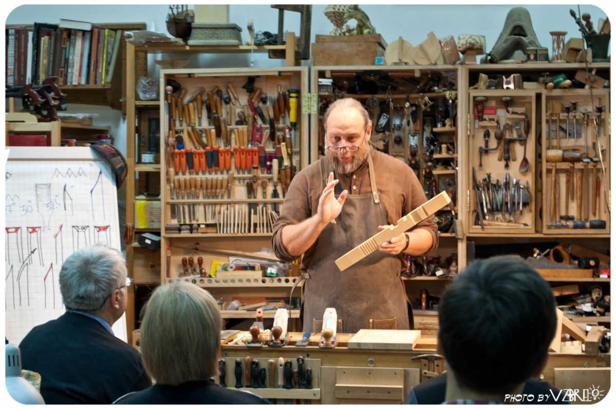 - Обучение приёмам работы с традиционным ручным инструментом. (Рубанки, стамески, пилы и т.д.)