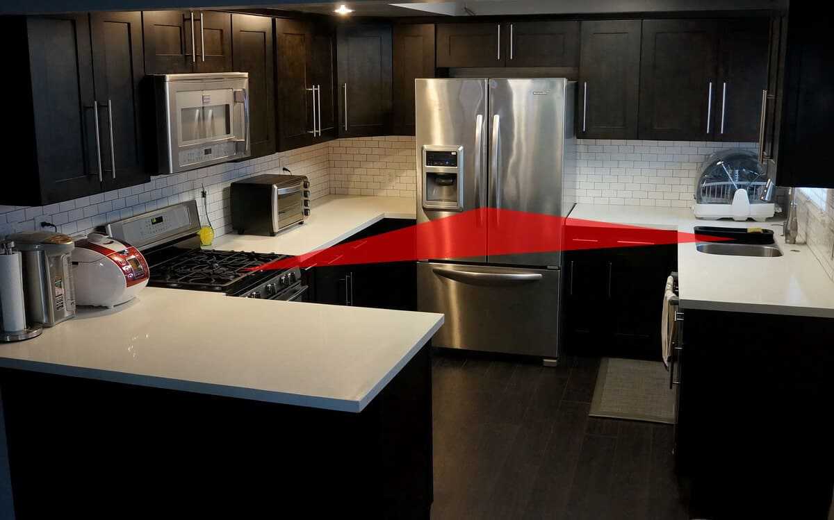 Рабочий треугольник – это такое размещение рабочих зон (хранения, разделывания и приготовления или по другому – плита, раковина, холодильник), которое будет похоже на треугольник.