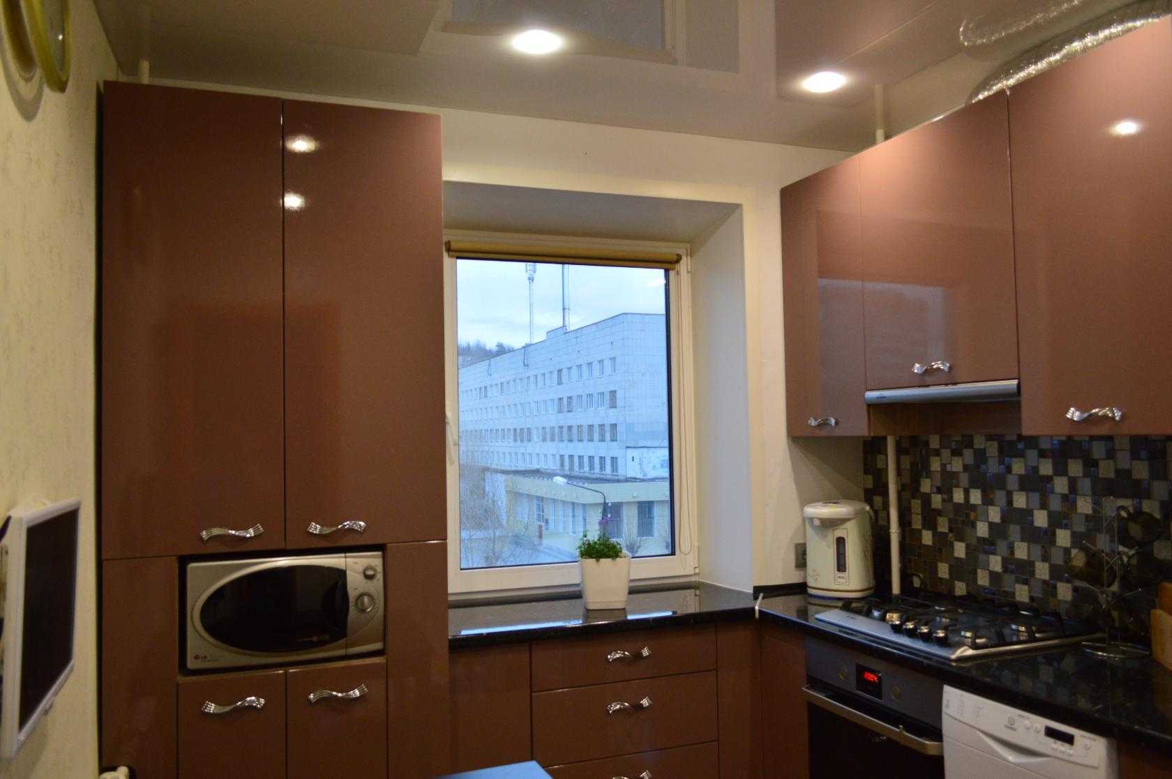 Если кухня примыкает к балкону, есть возможность вынести часть бытовой техники. В боковой нише найдется место для холодильника, микроволновки. Если балкон утеплить и оснастить его полками и пеналами, там можно хранить консервацию, овощи и другие продукты. Также в целях экономии пространства стоит рассмотреть замену бытовой техники на более компактную. Например, обычный большой холодильник занимает очень много места, поэтому его можно заменить на морозильную камеру и стационарную мини-модель для продуктов.