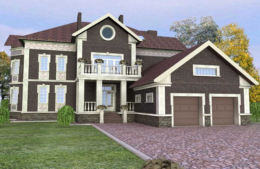 После создания эскизного проекта, по желанию заказчика, выполняется 3D визуализация будущего коттеджа в разных цветовых решениях фасада:
