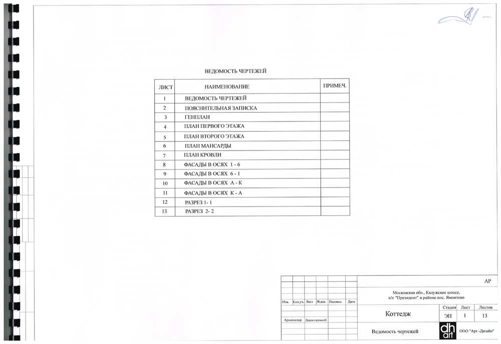 - Ведомость чертежей