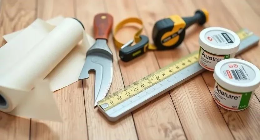 - Разметка пола: Определите направление укладки шпона. Обычно шпон укладывают вдоль длинной стены.