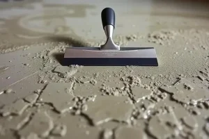 - Нанесение клея: Нанесите клей на основание с помощью зубчатого шпателя.