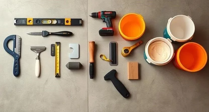 - Инструменты: Уровень, правило, шпатель, дрель, перфоратор, плиткорез (для плитки), рулетка, карандаш, строительный нож, резиновый молоток, валик, кисть, миксер (для приготовления стяжки и клея).