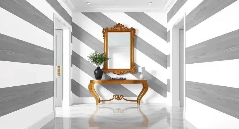 Ответ: Вертикальные полоски визуально увеличивают высоту потолков, горизонтальные – расширяют стены, а диагональные – создают ощущение динамики.